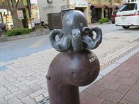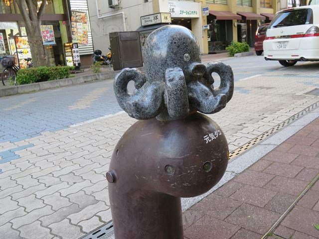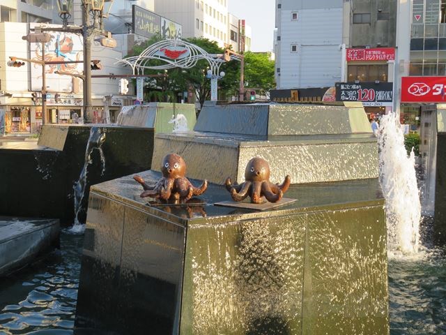 駅前には噴水があり、そこにはタコが乗っています。