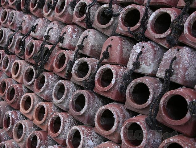 海辺を歩いて行くと、タコの町らしくタコ壺が並んでいます。