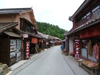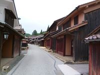 島根県の石見地方で生産される赤っぽい石州瓦とベンガラ漆喰の壁で、町全体が赤く色付く町です。