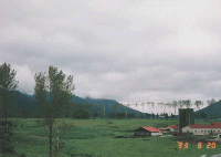 人の造った公園ですが、きれいに芝が敷きつめられ、川が流れて、奥にはこれまた牛の放牧が。