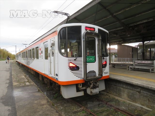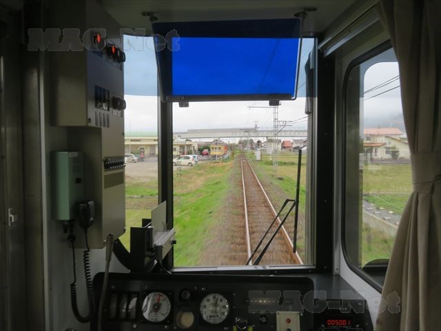 単線の電車は、途中の川俣駅でスイッチバックで前と後ろが入れ替わります。