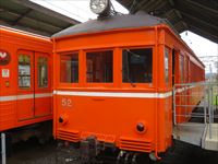 駅の隅には、かつて活躍していたオレンジの車両が展示されています。