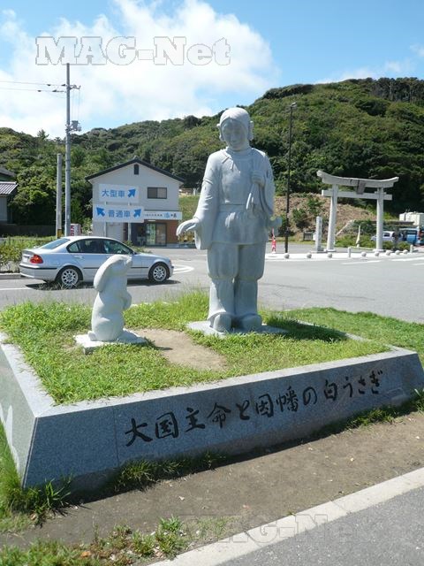 海岸入口には、その話にちなんだ石像が建てられ、また近くには白兎を祭る白兎神社もあります。