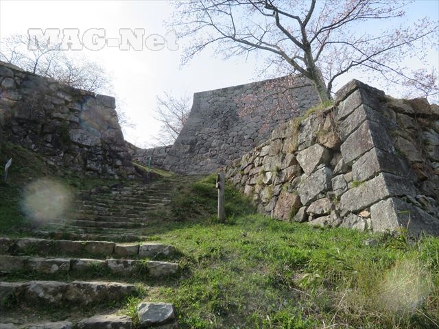 やがて目の前が開け、城の石垣が並んでいます。