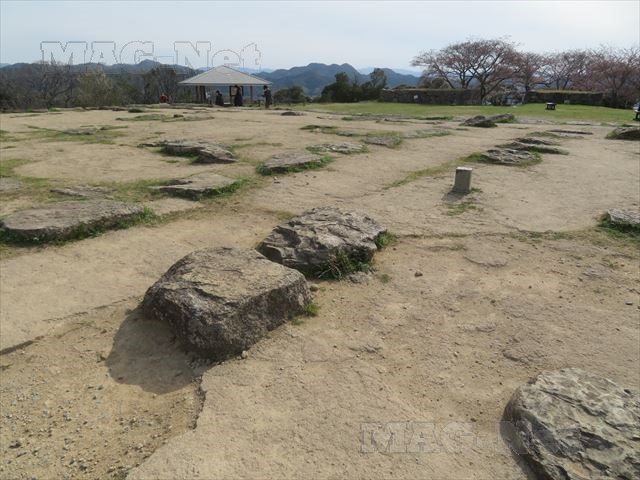 そして足元は米子城の天守閣の跡で、土台となる石が並んでいます。