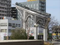 JR米子駅の駅前広場には、天に向けて駆け登るSLのモニュメントがあります。