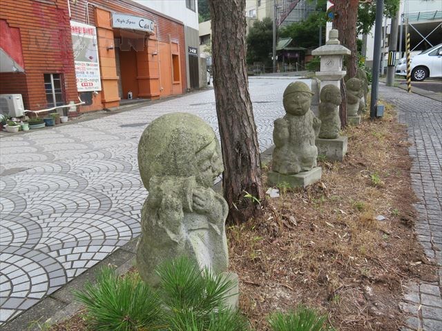 通りには子供や地蔵さんを模ったかわいらしい石像が並びます。