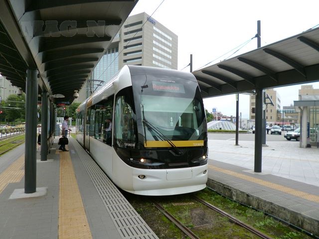 路面電車といってもあなどることなかれ、ポートラムと呼ばれる曲線美のモダンなLRT車両です。