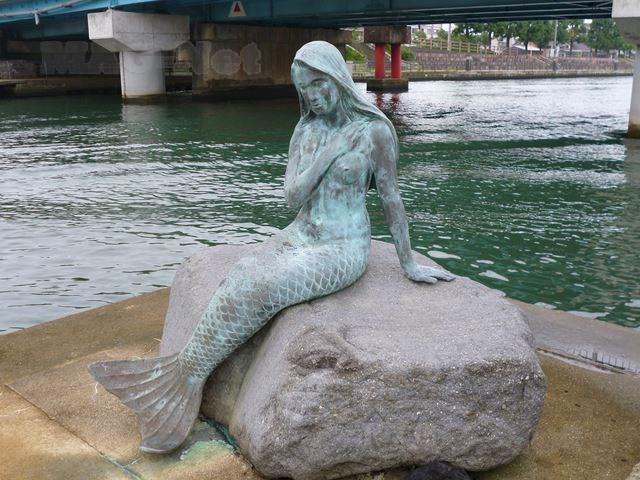 橋を越えたところには「岩瀬カナル会館」があり、運河に向かって人魚の像が腰をかがめています。