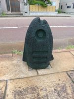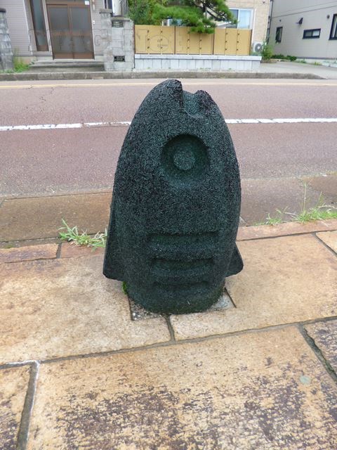 道路から側道への車止めには、魚の形をした車止めが使われています。