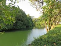 「千保川」に架かる「鳳鳴橋」には、橋の中間部に金色の2体の鳳凰像が向かい合って立っています。