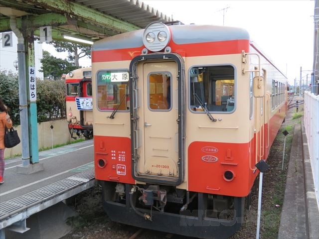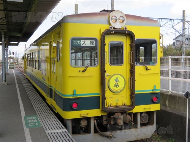 大原駅で帰りの外房線の電車を待っていると、後続のいすみ鉄道が駅に入ってきました。