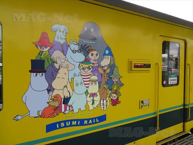 車体にはムーミンを囲んで、ちびのミイ、スニフ、スネフキン、スノーク、ニョロニョロなどムーミン谷の面々が揃っています。
