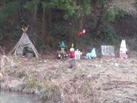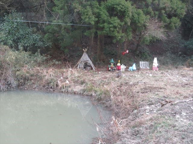 池の淵にムーミンがピクニックに来ており、ムーミン谷の様子を再現しています。