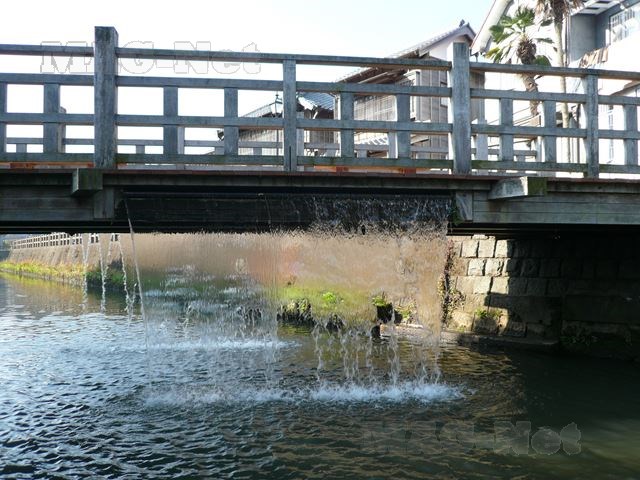 人影もまばらなのにおかしいなと思い表に出ると、忠敬の家の前で小野川に架かる桶橋から水が流れ落ちているではありませんか。