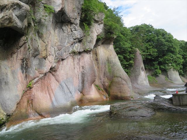 そして所によっては凹凸のある岩場になっており、その形からこの辺りは「般若岩」と呼ばれています。