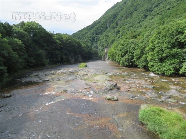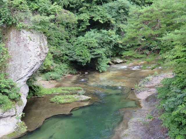 「吹割の滝」の上流は、水深も浅く水の流れが穏やかです。