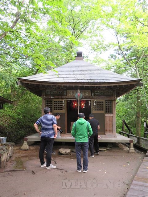 この「六角堂」のある場所が、滝を臨むことのできる絶景なのです。
