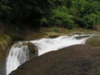 本家のナイガラヤと較べると落差は小さく雲泥の差がありますが、曲面に滑らかに削られた崖を水が走る様は本家にない優美な姿です。