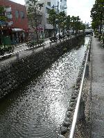 この通りは、星川と呼ばれる用水路が道路の上り/下りの車線を区切っています。