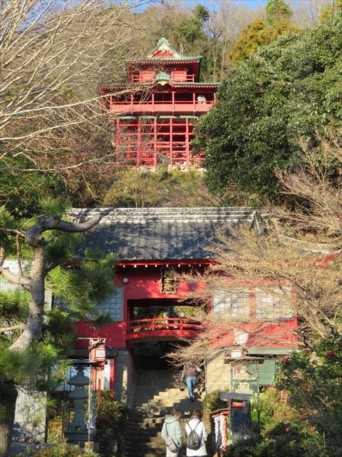 「磯山弁財天」で、朱色の山門を潜ってその先の石段を登っていきます。