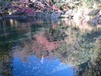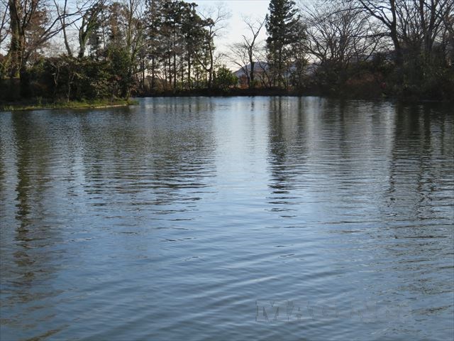 風が吹いているせいで水面が小さく波立ち、写真では澄んだ水の様が判り難いかも知れません。