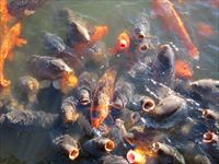 餌を与えると水面が波立ち、我先に寄って来て食いついてきます。
