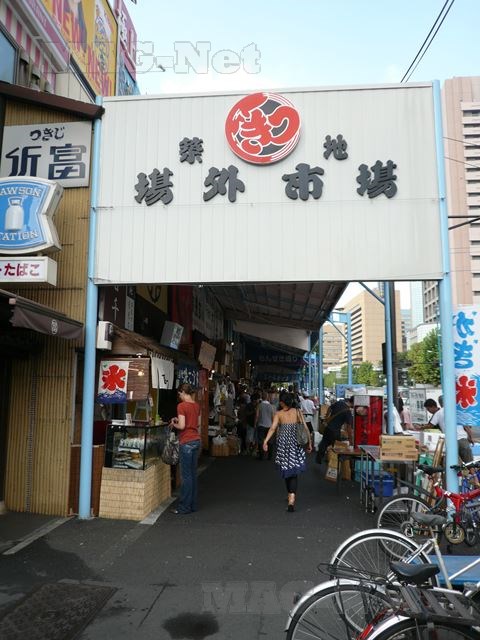 地下鉄築地駅を出て南に一筋歩いたところに、築地場外市場はあります。