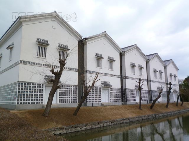 5連の白壁土蔵の建物は、赤穂城米蔵跡に建てられたものです。