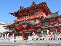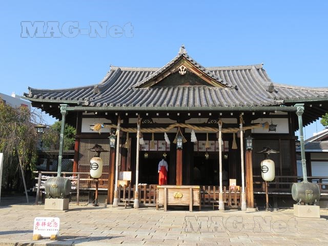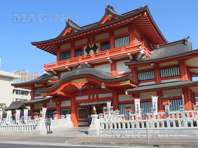 「大手町通り」の「姫路城」の前まで来たところで、城には入らず右手に折れると、眩しいほどの朱色の社殿が目に入ってきます。