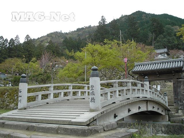 谷山川に架かる「登山橋」を渡って、城跡に向かいます。
