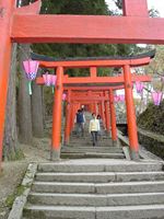 城の左手にある鳥居の連なった階段を駆け上がると、城跡まで登ることができます。