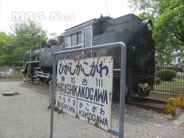 公園で保存されているのはその時の車両で、かつてここに存在していた園長寺駅の看板も残っています。