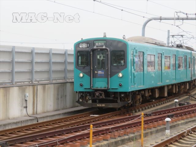 以前福知山線で谷川駅を通り過ぎた時に、田舎に似合わない派手な緑色の車体を見かけたことがありましたが、ここ加古川から出ていたものだったのです。