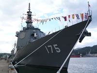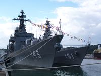 護衛艦「みょうこう」、「あたご」、「しらね」、「あさぎり」が勢揃いし、凛々しい姿を披露しています。