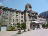 1927年竣工の建物で、庁舎前の広場のベンチでは持参した昼食を広げている人の姿が見えます。