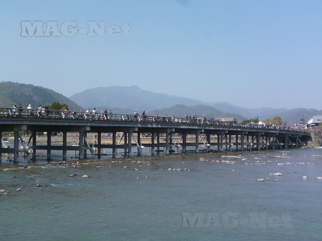 それでは橋の南側の阪急嵐山駅から北側に向かって、155mの橋を渡ってみます。