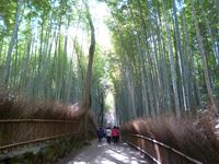 「竹の小径」は竹林の中をトロッコ嵐山駅まで青々とした竹に囲また道が続き、本来は静かなところです。