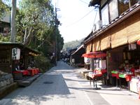 参道にはすだれと提灯がかかった和風の建物を模った土産物屋が並び、「化野念仏寺」への気持ちを盛り上げてくれます。