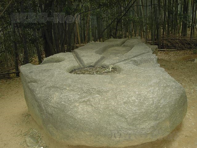 少し歩いたところには亀形石造物と呼ばれる亀の甲羅をくり抜いた形の石が並んでします。