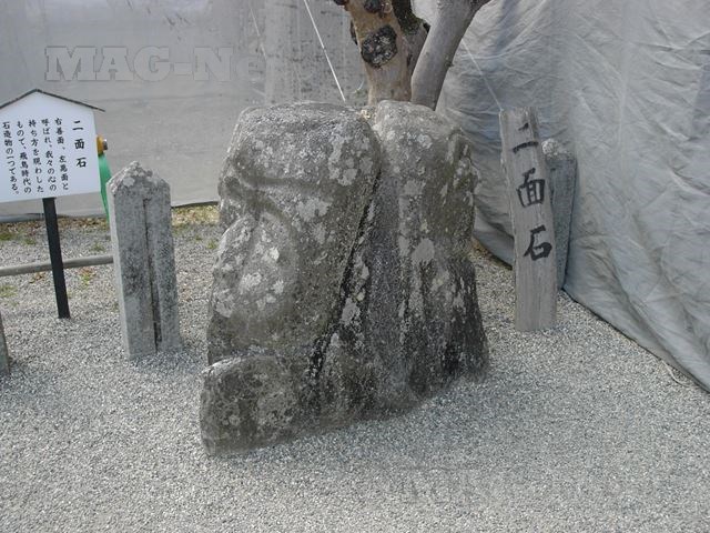 ここは聖徳太子が創建の7つの寺のうちの1つで、境内には善悪を表す2つの人面を持った奇石 二面石が立っています。