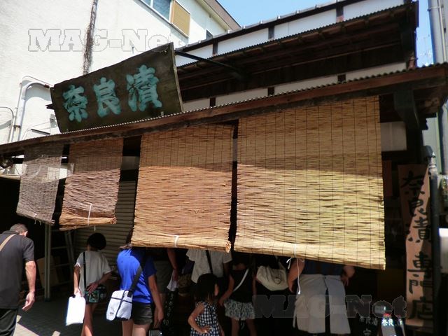 参道には、柿の葉寿司や柿うどんのほかに、奈良漬の店も並んでいます。