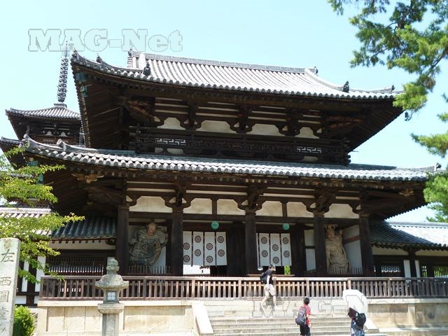 「中門」は、飛鳥時代に造られた入母屋造の二重門で、左右には奈良時代に造られた金剛力士立像を安置しています。