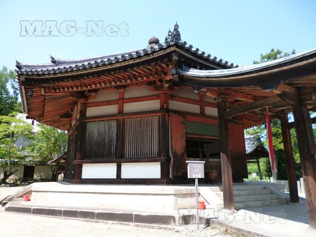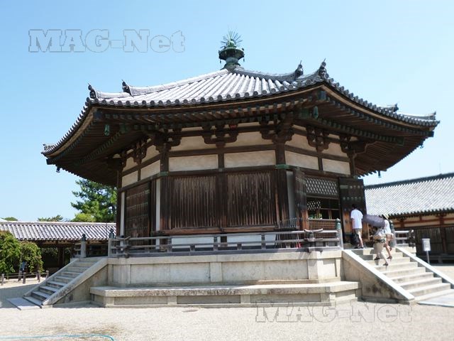 八角形の円堂で、飛鳥時代の聖徳太子の秘仏救世観音像が、ここに安置されています。