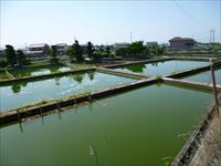 一見すると田舎の水田風景のようにも見えますが、あぜがコンクリートで妙に丈夫に作られています。