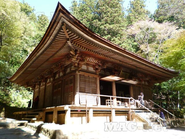 傾斜面に建てられた金堂は、懸造(かけづくり)という山岳地帯に多い建て方です。