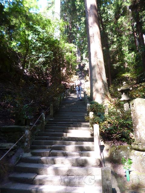 原生林に囲まれた長い石段が、どこまでも続きます。