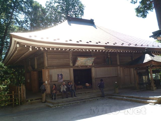 金堂の前には、入母屋造、柿葺きの弥勒堂があります。