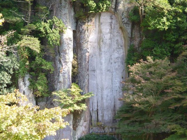 高さ33mもある弥勒岩に、弥勒仏の立像が彫られています。