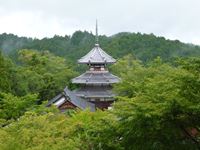 「金峯山寺」からは、吉野朝皇居跡である「金輪王寺」を眺めることができます。